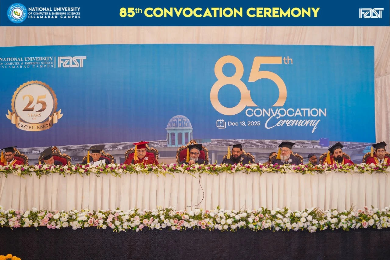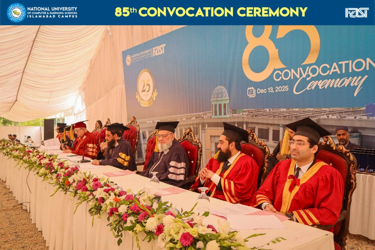 The Islamabad Campus of FAST-NUCES proudly hosted its 85th Convocation Ceremony on December 13, 2025, marking a momentous occasion in the academic journey of our graduates. The ceremony celebrated the successful completion of BS, BBA, MBA, MS, and PhD degree programs, honoring years of dedication, perseverance, and academic excellence.