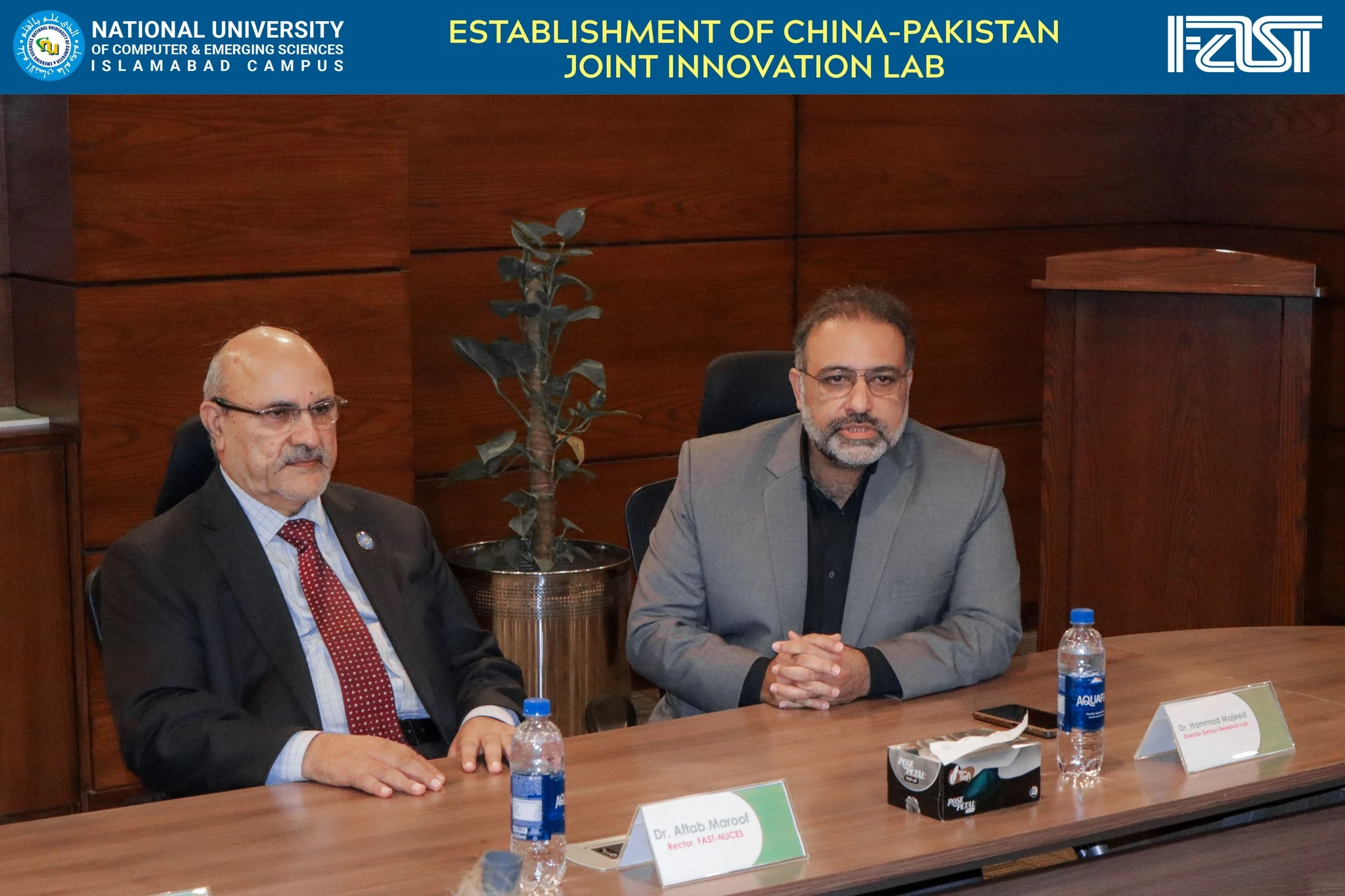 Dr. Aftab Maroof, Rector of FAST NUCES, representing the university. Dr. Hammad Majeed, Director of the Genesys Research Lab, who will also serve as the Pakistani Director for the new Joint Innovation Laboratory.