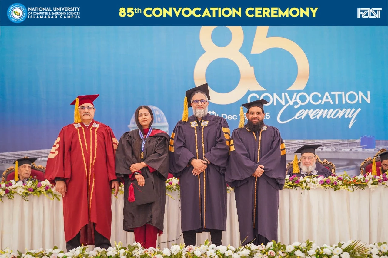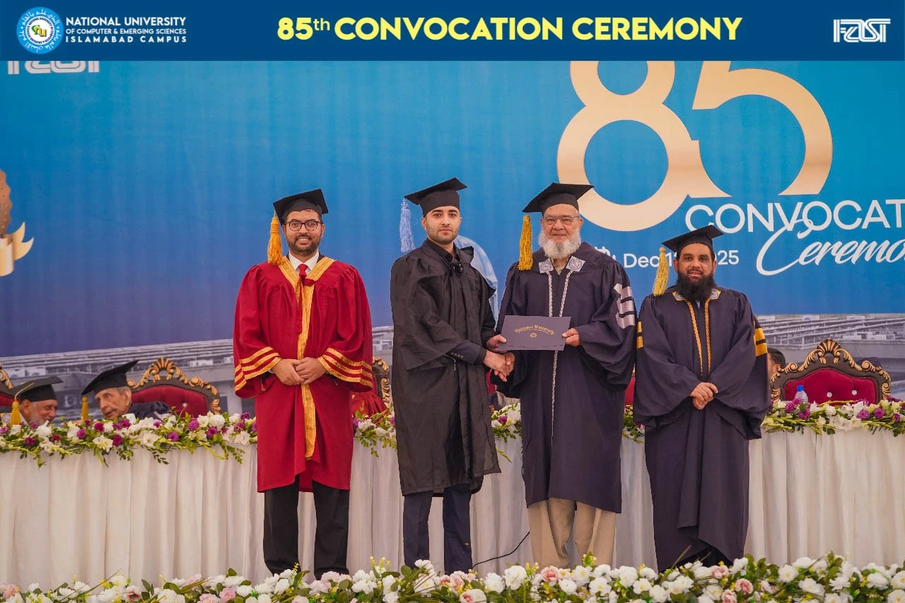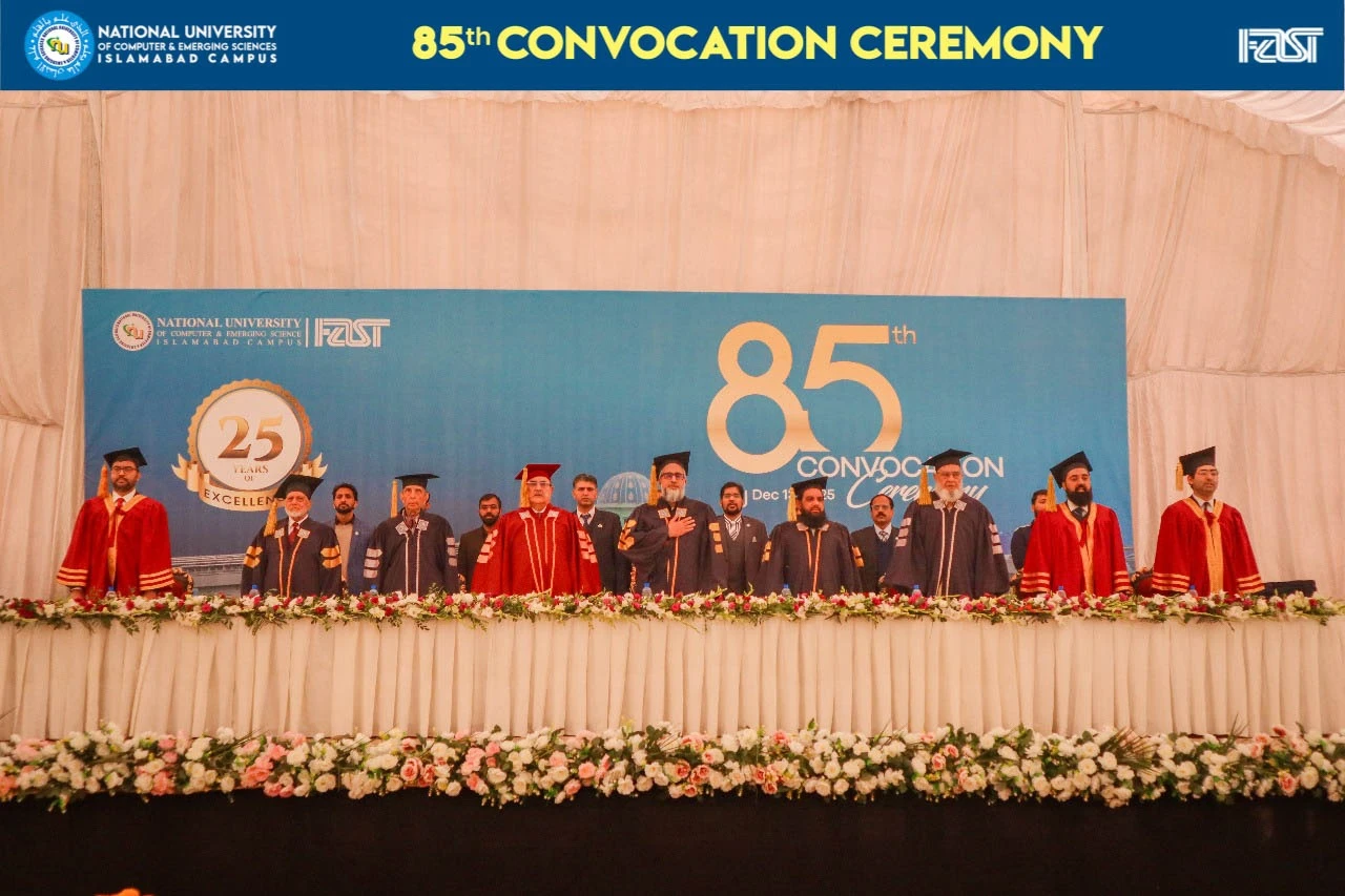 The Islamabad Campus of FAST-NUCES proudly hosted its 85th Convocation Ceremony on December 13, 2025, marking a momentous occasion in the academic journey of our graduates. The ceremony celebrated the successful completion of BS, BBA, MBA, MS, and PhD degree programs, honoring years of dedication, perseverance, and academic excellence.